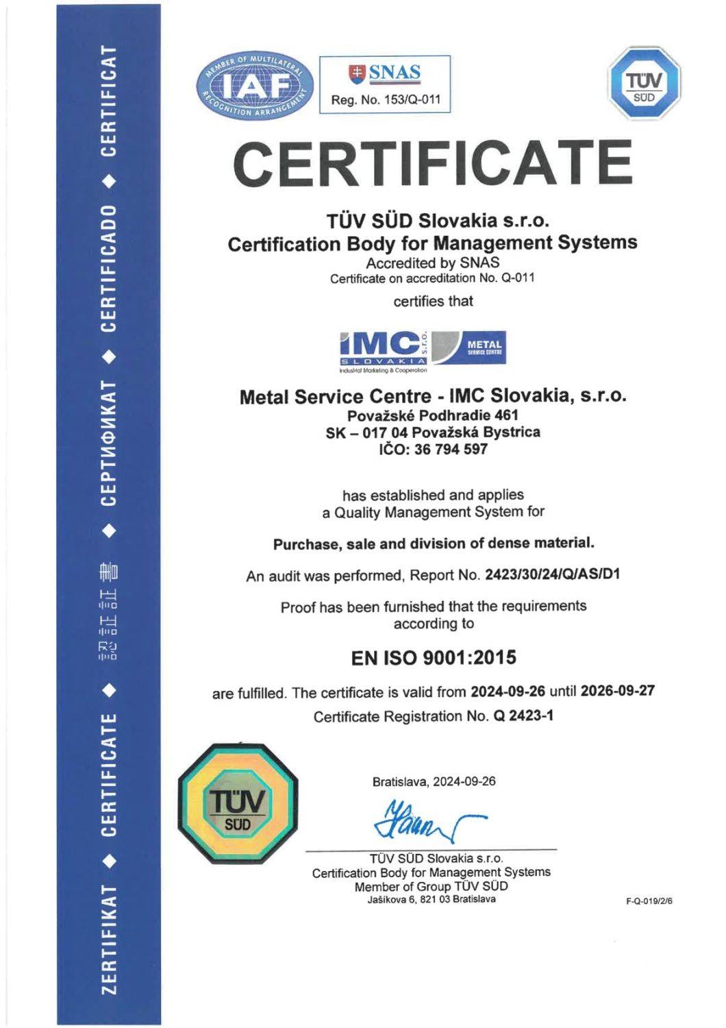 Metal Service Centre - IMC Slovakia s.r.o. is one of the leaders on the Slovak market in the field of supply and sale of aluminum materials, aluminum-bronze materials, bronzes, stainless steel, high-grade and structural steels intended for mechanical engineering production. It specializes in the cutting of materials.